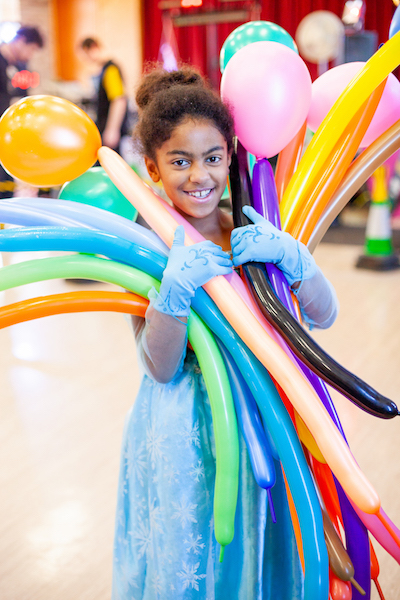 Birthday girl with balloons funforce mega party norfolk