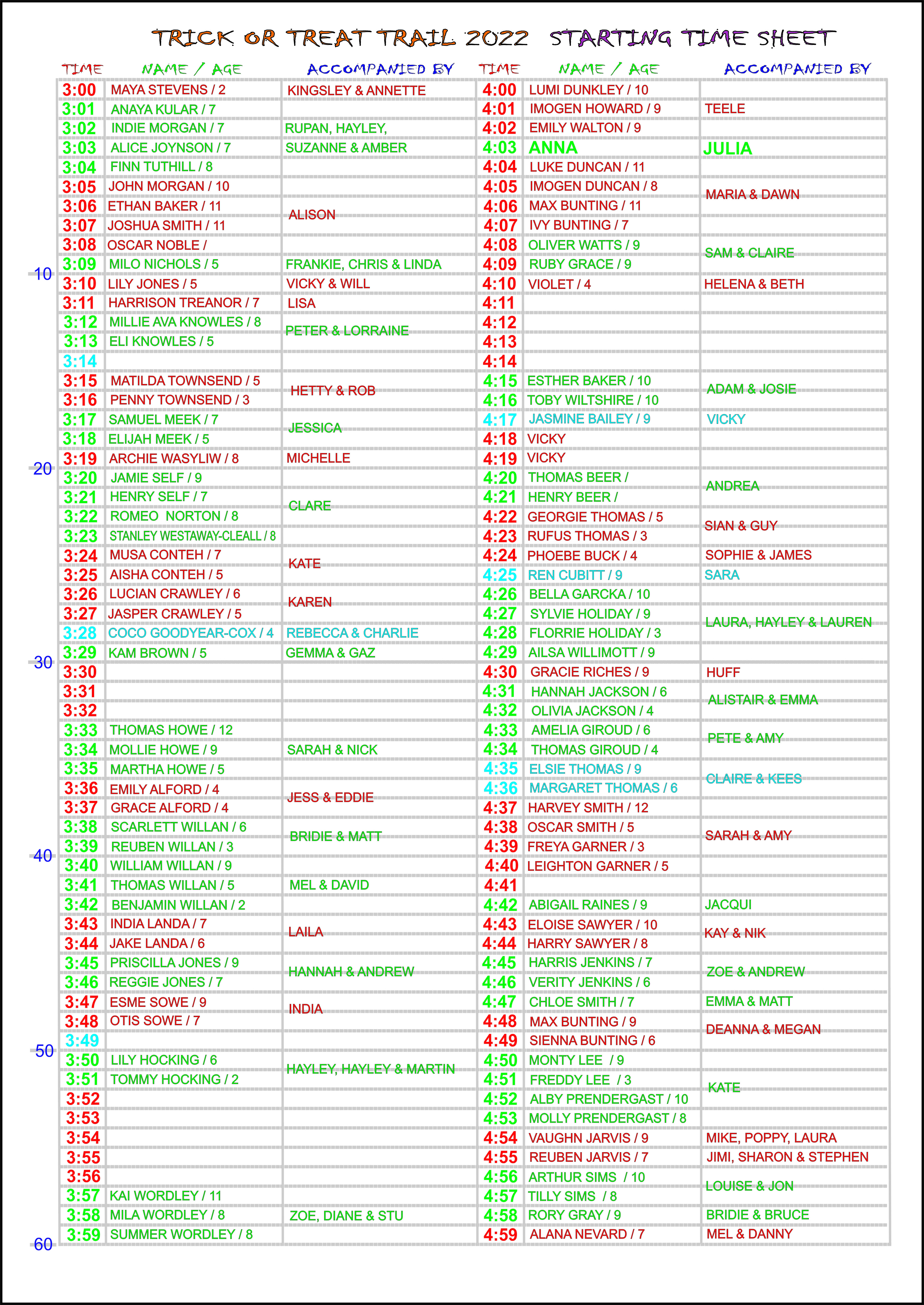 2022 starting time sheet